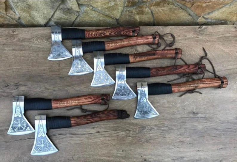 Forged Carbon Steel Viking Axe also comes with custom Engraving, Etching and Carving having high quality. It is fully usable tool. We also provide Custom made Axes as well.